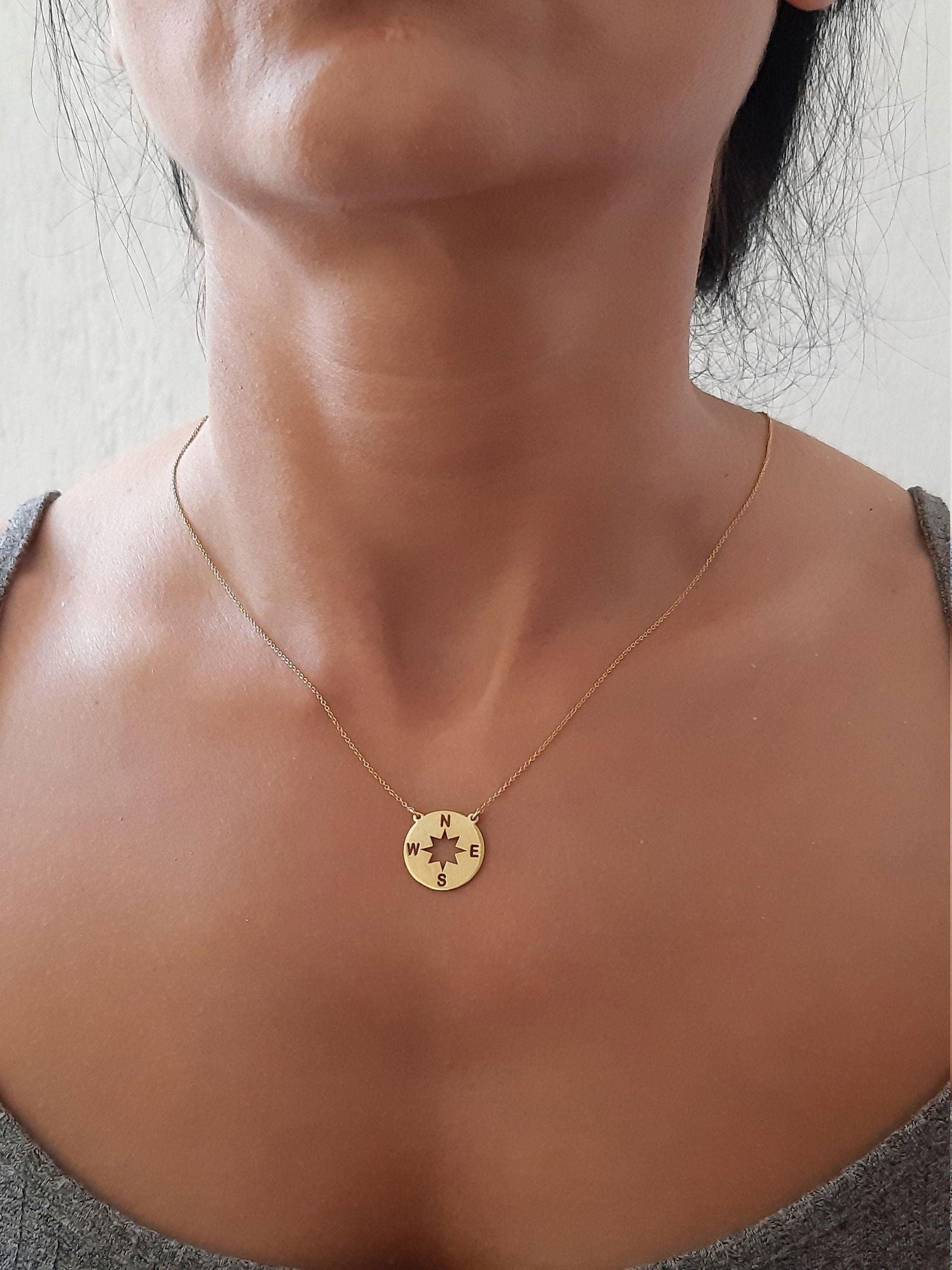 This Elegant Compass Necklace is a solid gold delicate handmade Necklace .