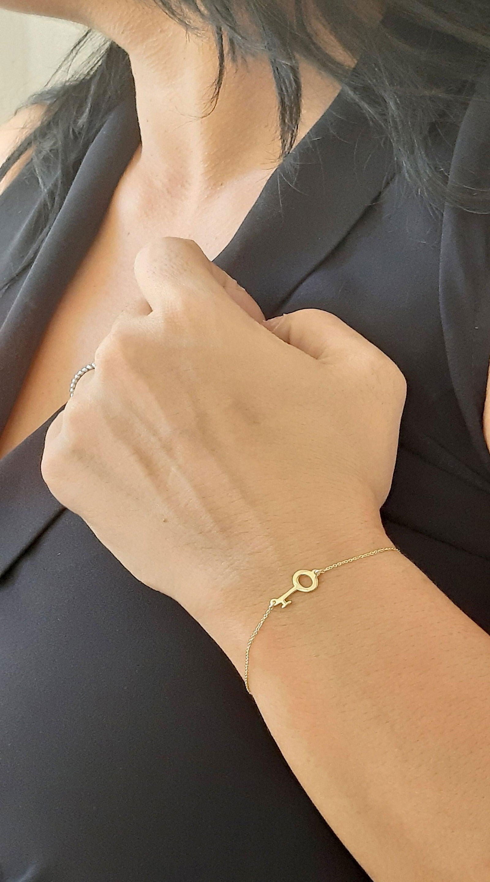 This Elegant Key Bracelet is a solid gold delicate handmade minimal Bracelet for good luck .
