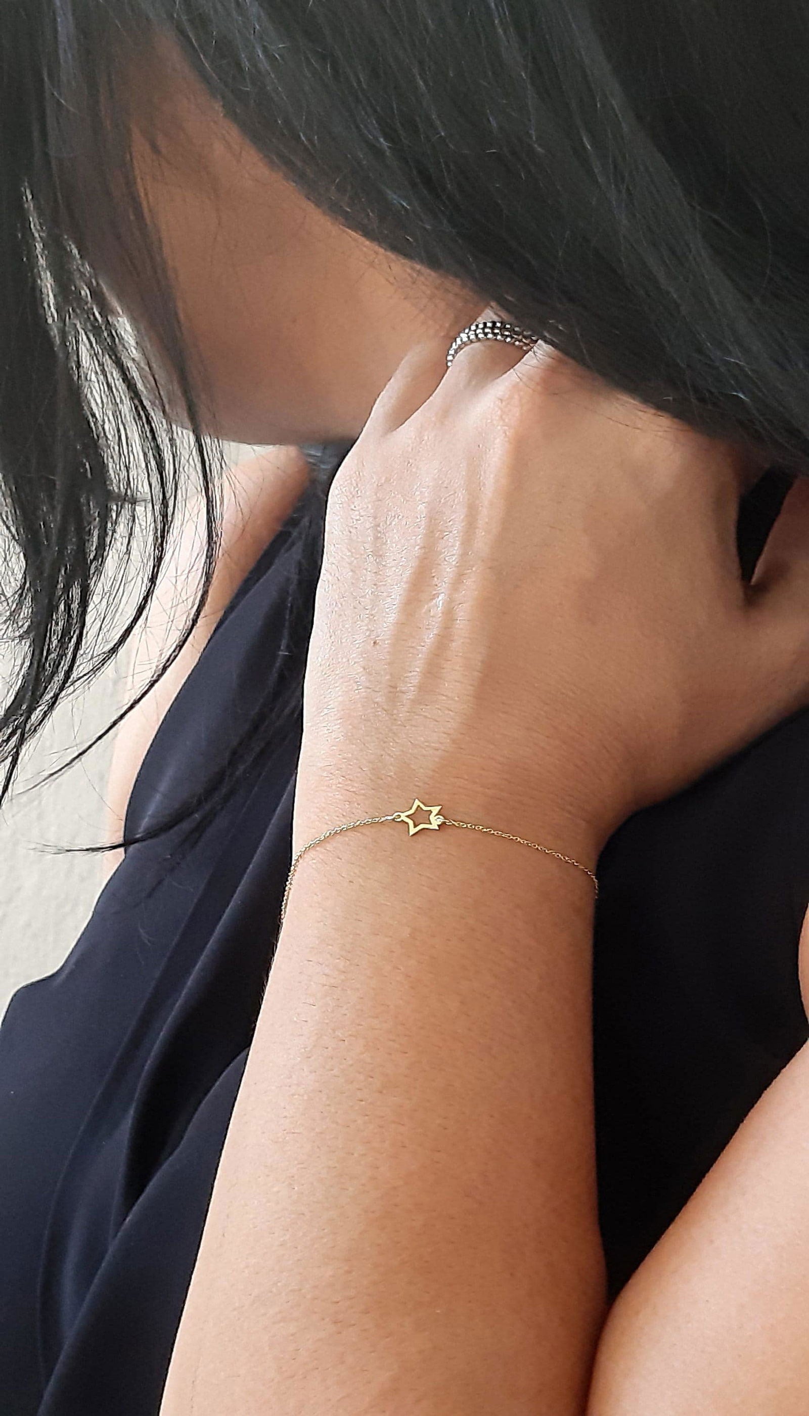 This Elegant Star Bracelet is a solid gold delicate handmade minimal Bracelet .